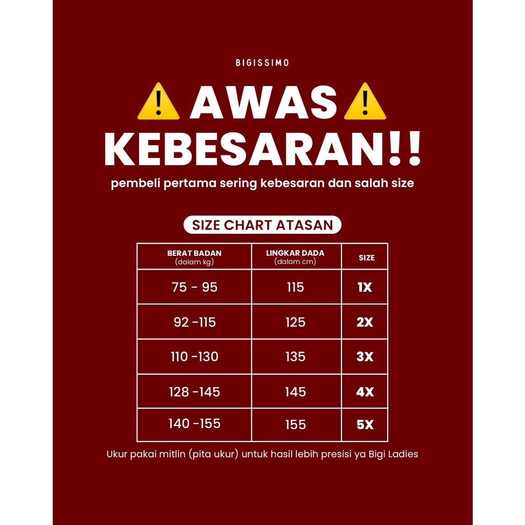 | UKURAN | 1X (XXXL), 2X (XXXXL), 3X (XXXXXL), 4X (XXXXXXL), 5X (XXXXXXXL) |