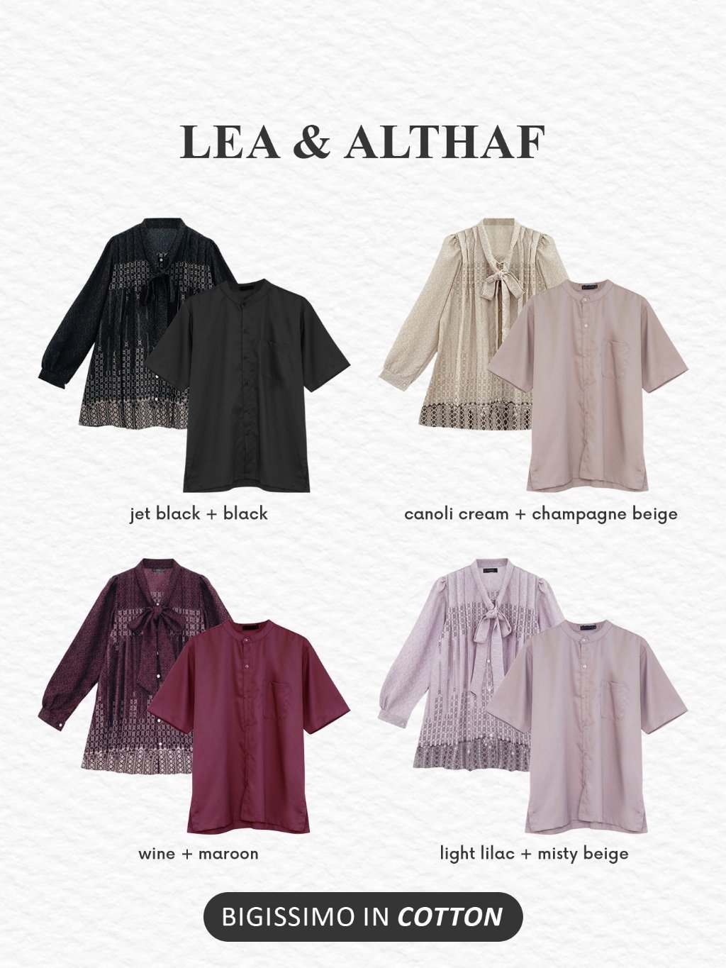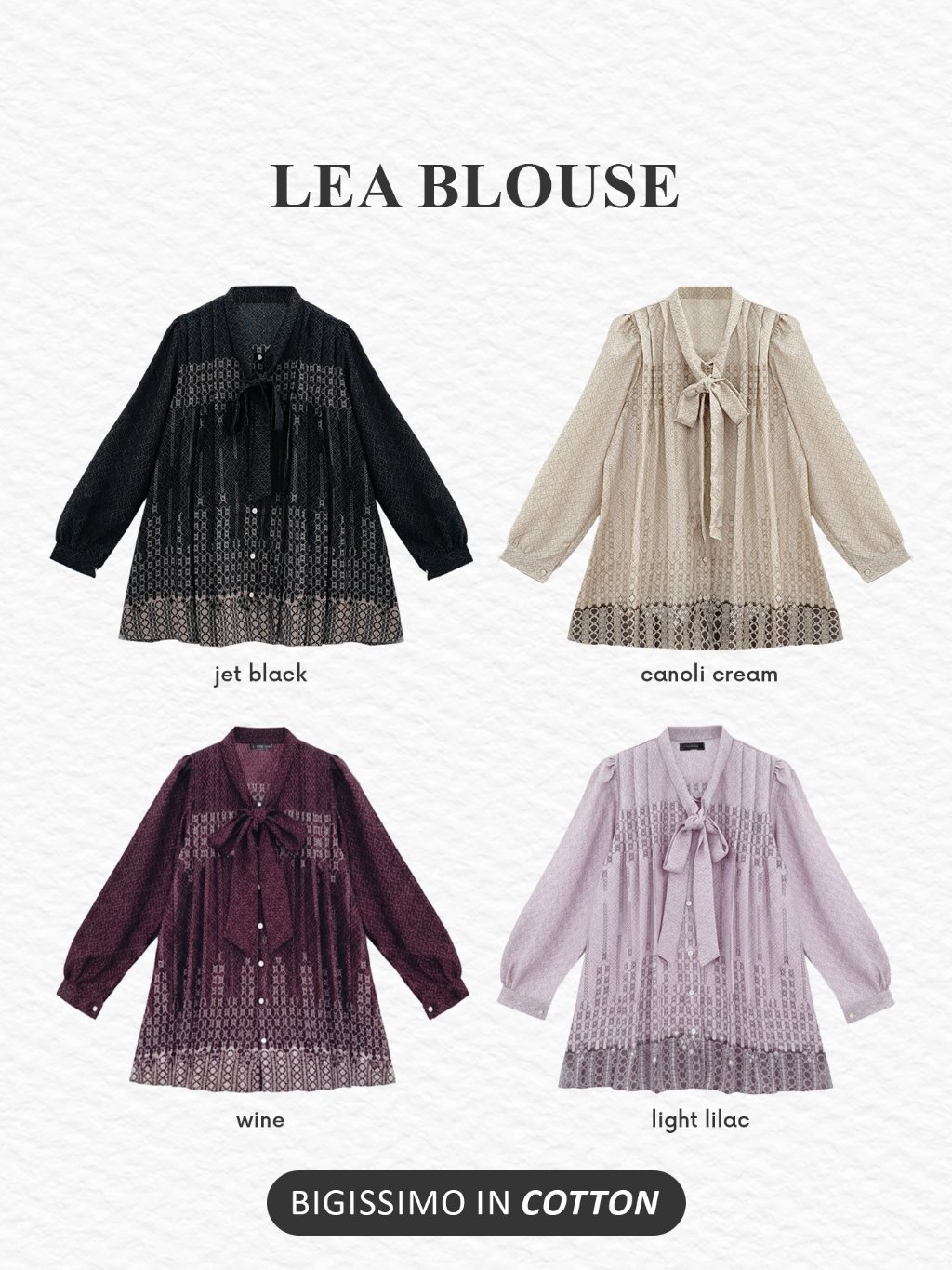 | WARNA | CANOLI CREAM, LIGHT LILAC, WINE, JET BLACK |