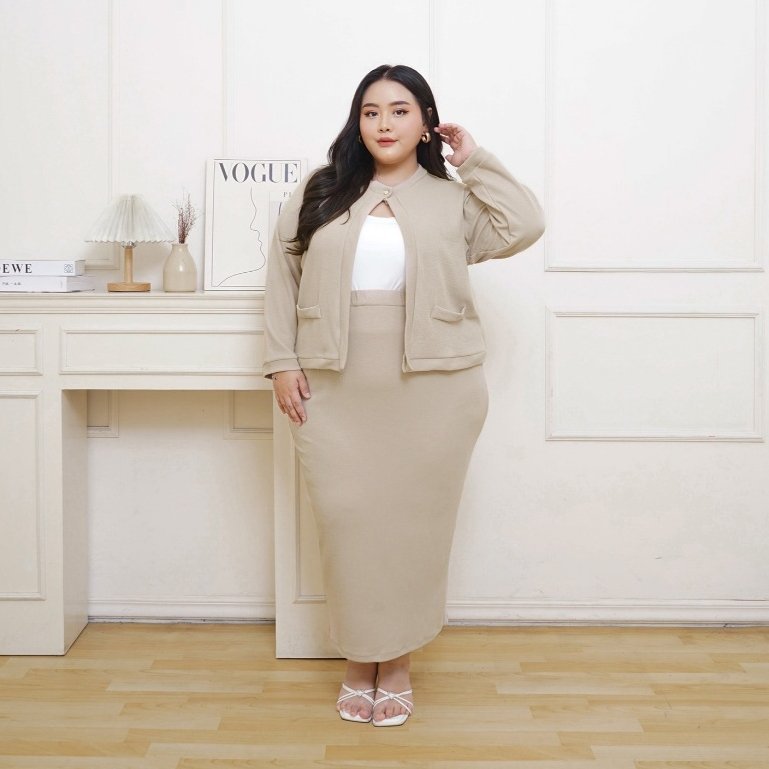 | WARNA | ONE SET- BUTTERCREAM, CARDI ONLY – SADDLE, ONE SET – BLACK, ONE SET – JADE, ONE SET – SADDLE |