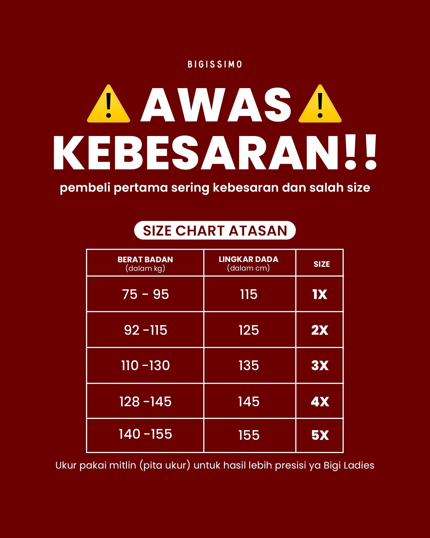 | UKURAN | 1X (XXXL), 2X (XXXXL), 3X (XXXXXL), 4X (XXXXXXL), 5X (XXXXXXXL) |